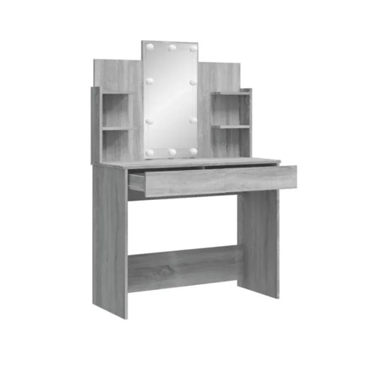 Voir le produitCoiffeuse grise à led - table de maquillage 2 tiroirs